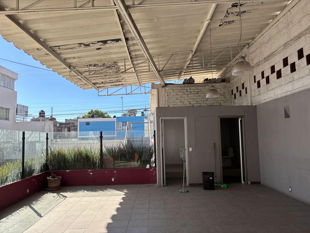 Tiene un área abierta con baños para mujeres y hombres, el cual es ideal como para una cafetería o como zona de comida de empleados al aire libre.